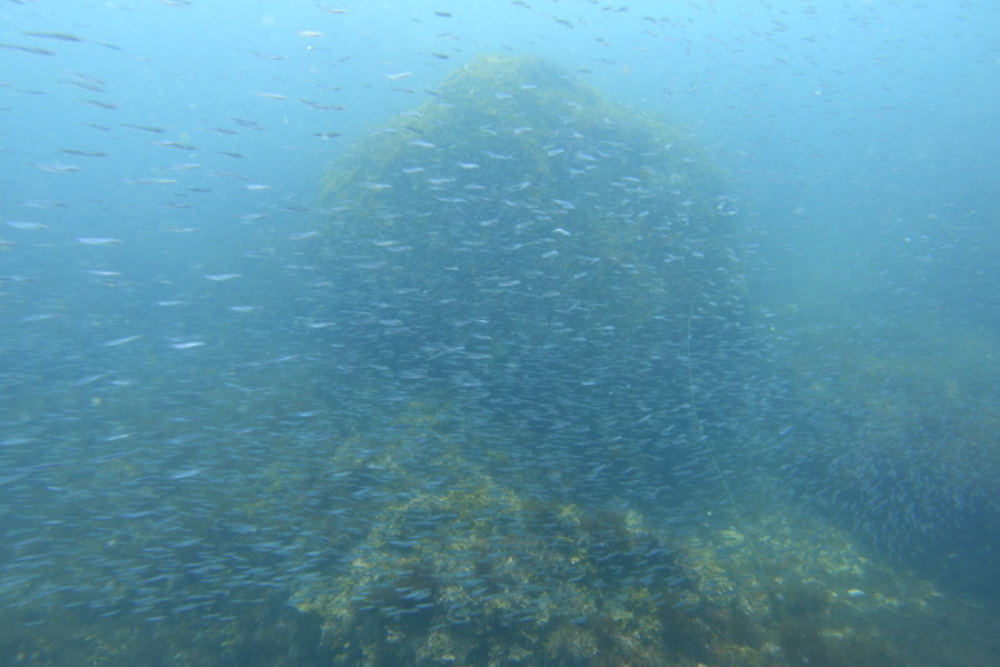 イワシの稚魚やキビナゴ、イワシがどこまで行っても途切れることなくず~~~~~っと巻かれっぱなし(≧▽≦)