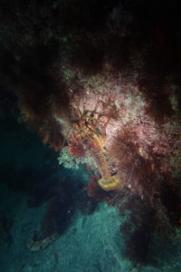 昼間は岩の隙間に隠れている甲殻類も