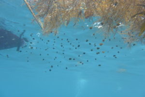 風で流れてきた海藻にはイシダイやアミメハギなどの沢山の赤ちゃんが隠れてます♪