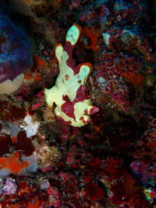 白い身体がとっても目立つクマドリカエルアンコウ、