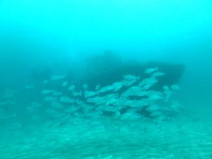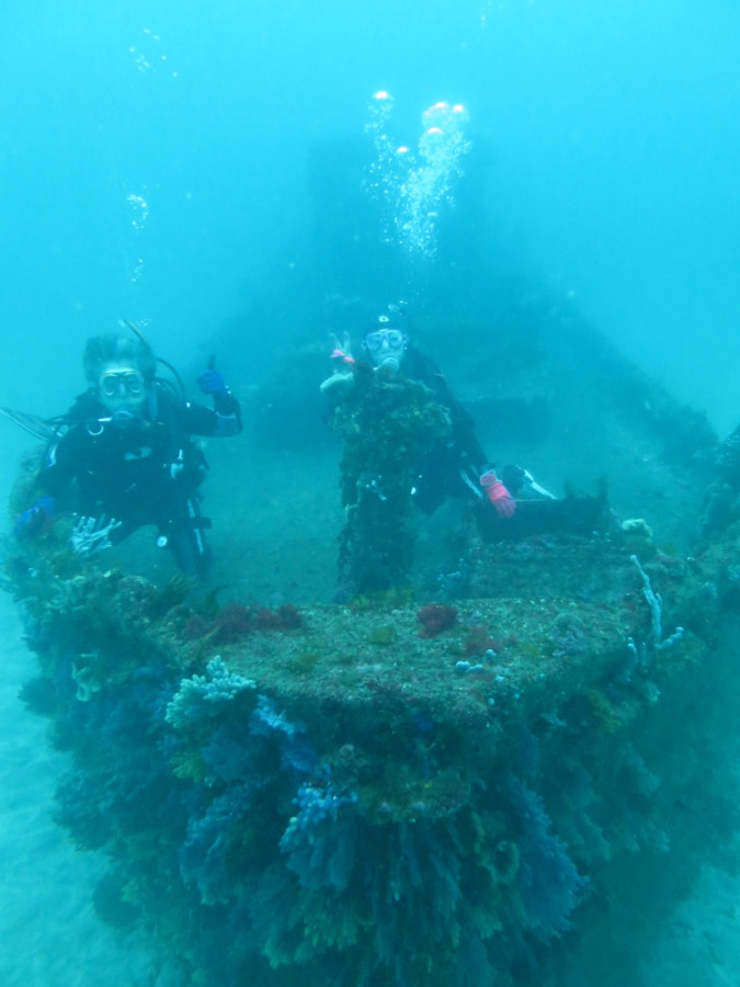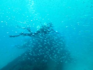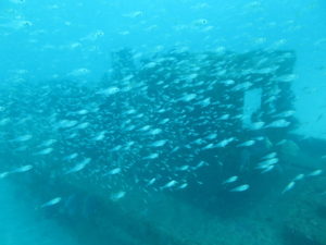朝一の沈船は透明度もよく船全体が見え♪