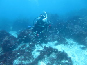 他に見た魚:アオウミガメ・アジの子供群れ・イシサンゴ・キンギョハナダイ群れ・ヒラメ・アイゴの子供群れ・