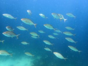 浅場の砂地にはイワシ大群が!それを狙っているのかカンパチの子供達がグルグル回ってました\(^o^)/