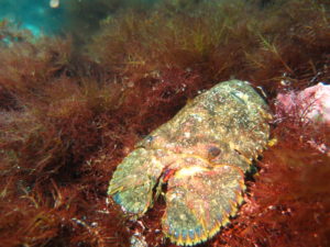 こちらはも無防備なほど岩場から出てきてたゾウリエビ