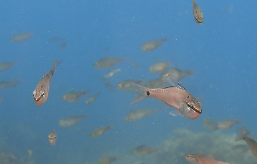 浅場に戻ればタカベの群に囲まれちゃいました(^^)