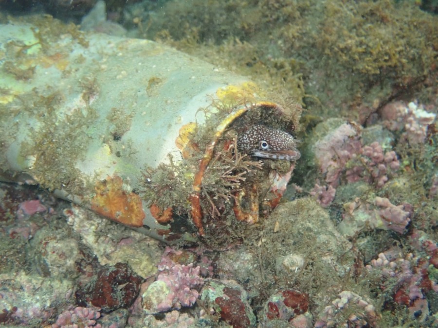 水中には残念なゴミがあるけど・・・こんな所にもウツボ子供が隠れてたり