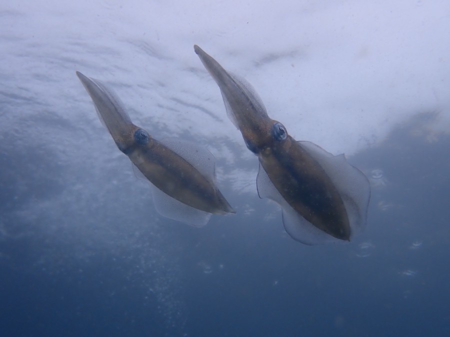 水面見上げればアオリイカがフワフワ~っと目の前に現れ♪