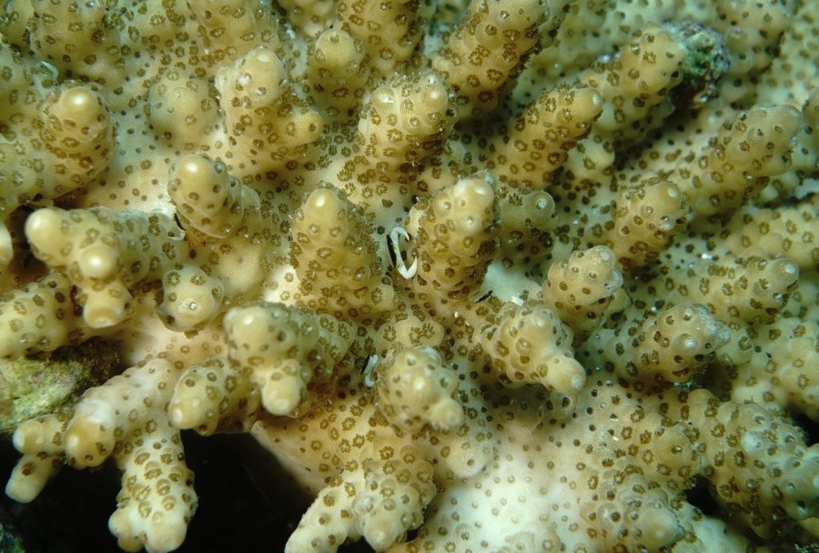 ミドリイシサンゴにはサンゴガニが暮れていましたよ♪