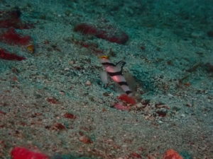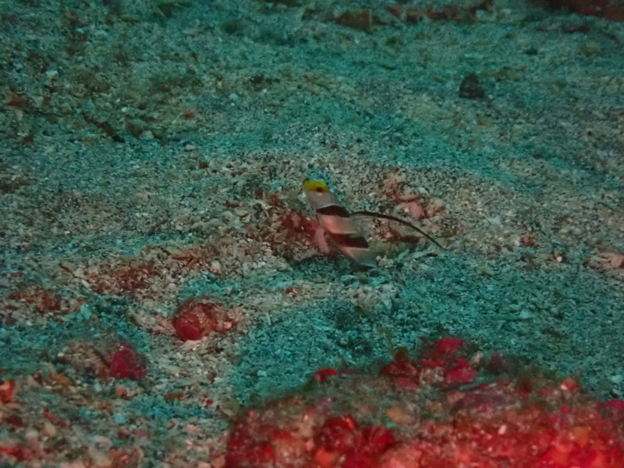 じっとこちらは巣穴からこちらをうかがうヒレナガネジリンボウ。。。
