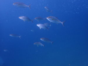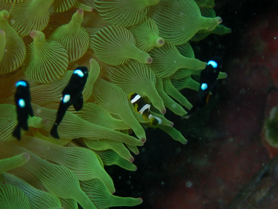 見れた生物:マダイの大ちゃん♪10分近く一緒にいました\(^o^)/、クマノミBaby、ミニイロカエルアンコウ、イワシ子供大群vsカンパチ捕食シーン、チンアナゴ、カミソリウオペア等他にも沢山の生物が見れた海でした!