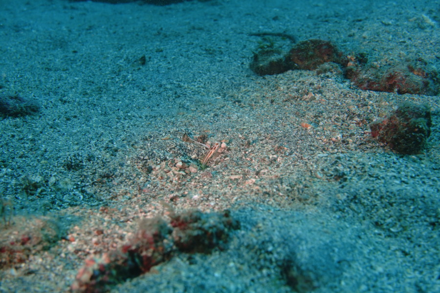 砂地には木くずに紛れたウミテング。