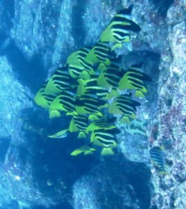 2ダイブ目にはイサキにタカベ・タカサゴ・ツムブリと魚影の濃い神子元の海を