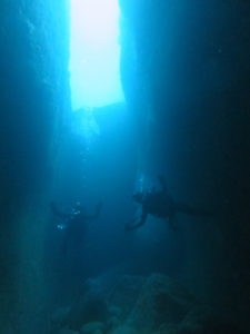 見た魚:イワシの群れにカンパチ群れ・ネンブツダイ群れ・キンメモドキ群れ・イシダイ・タカサゴ子供群れ・メジナ群れ・アカハチハゼペア・ウメイロ子供群れ・キンギョハナダイ群れ・テングダイ・アブラヤッコyg