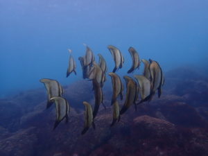 そうは言いながらも浅場!20匹ほどで群れてましたナンヨウツバメウオ幼魚^^v
