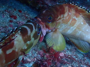 でもそれより強烈だったアカハタの掴み合い、咥え合い(@_@)