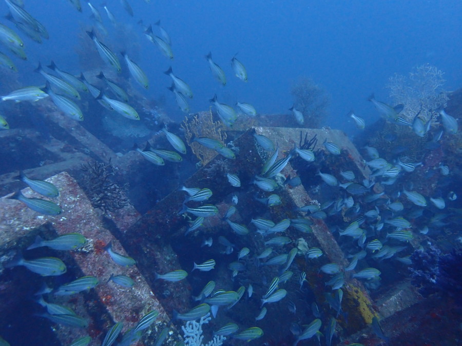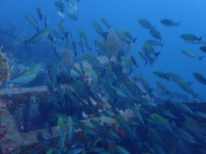 ヨコバマのタカベ、クロホシイシモチ、そしてナンヨウツバメウオ等の群れも相変わらず!