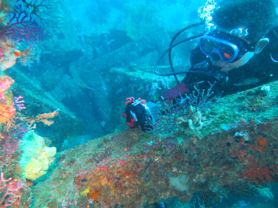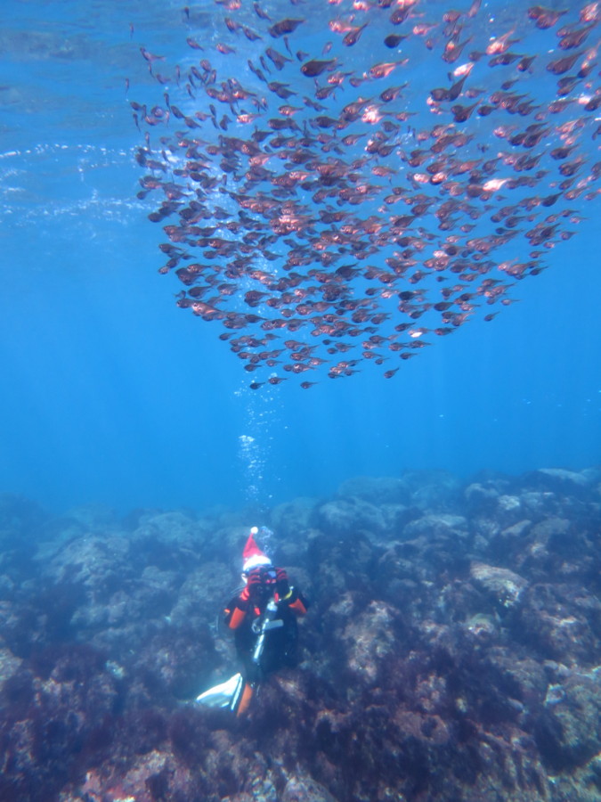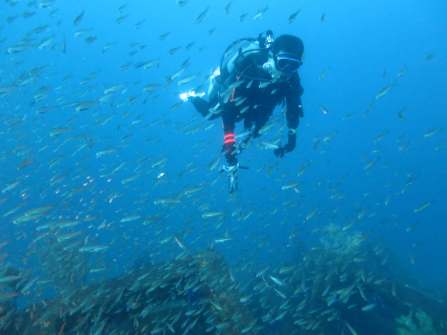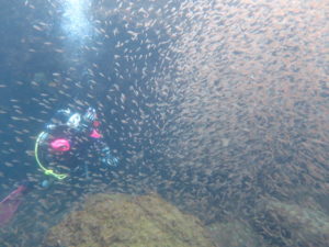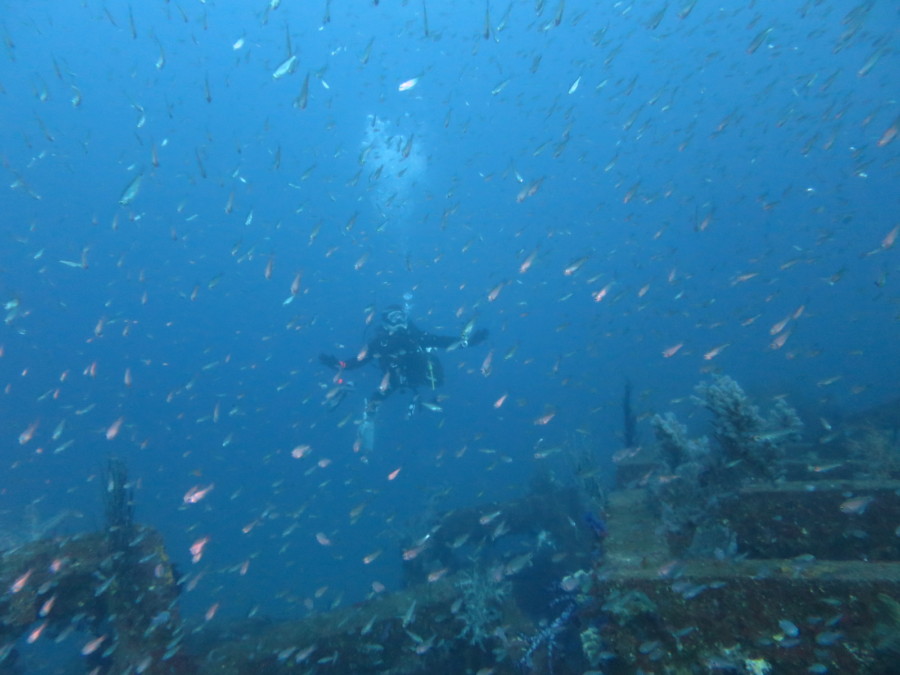 そして沈船ではサクラダイの群れと華やかさ満点!