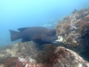 中性浮力の練習をしているといきなり真横に大きなコブダイ登場!!