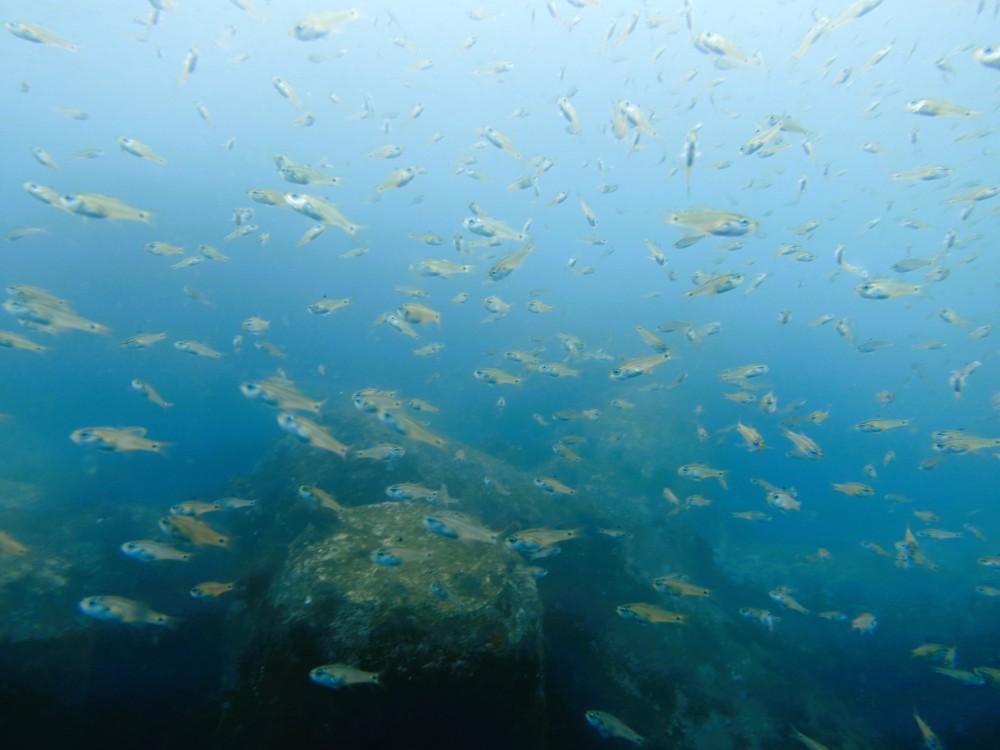 見れた魚:カゴカキダイ、クロホシイシモチ、ネンブツダイ群、アジ群、キビナゴ群、クマノミ、ミツボシクロスズメダイ、ニシキベラ、コブダイ、シロウミウシ、アオウミウシ、ハダカハオコゼ、キビナゴ群、カニノテ、マグサ、ボウシュウボラ、アカヒトデ、キタマクラbaby、ヒメジ等々
