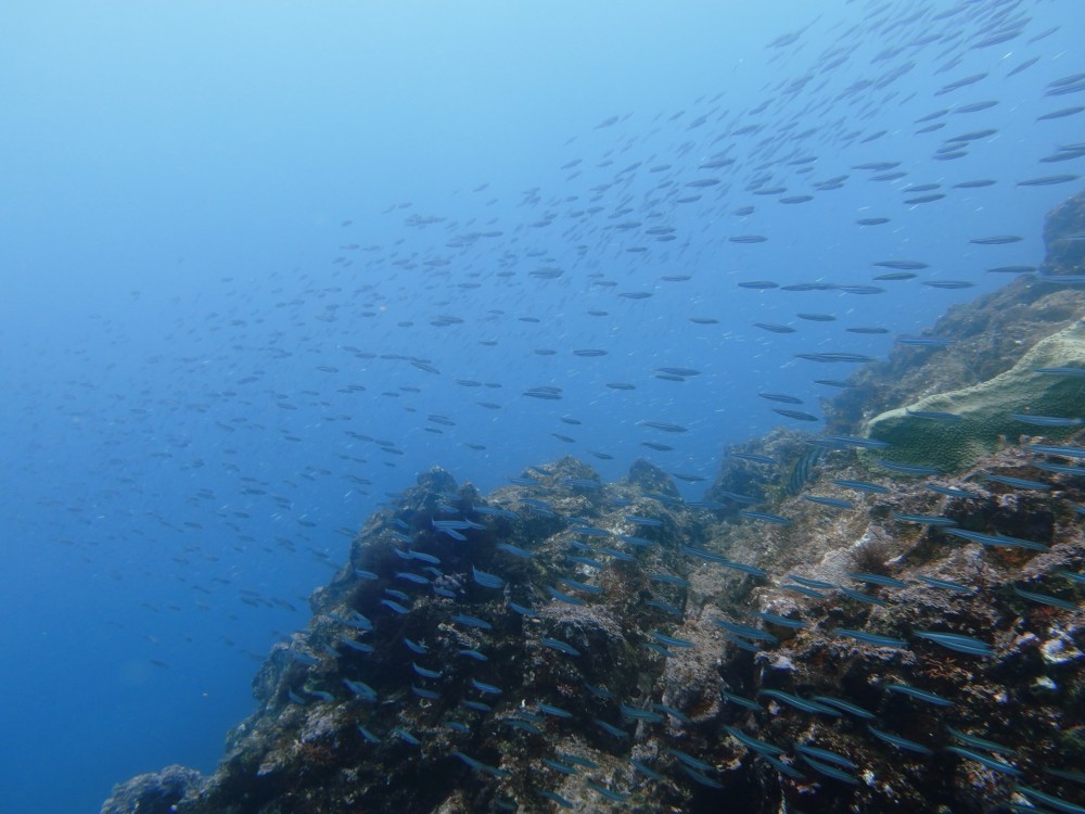 今日見れた魚:キビナゴ群、クロホシイシモチ群、アジ群、ハチジョウタツ、コンシボリガイ、オオベニシボリ、オオモンカエルアンコウ、イロカエルアンコウ、ミツボシクロスズメダイ、クマノミペア、ヒラタエイ、イネゴチ、オトヒメエビ等々