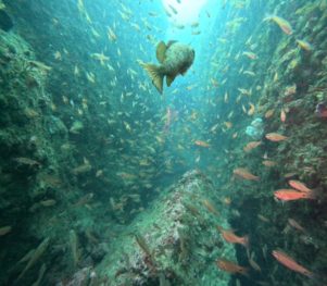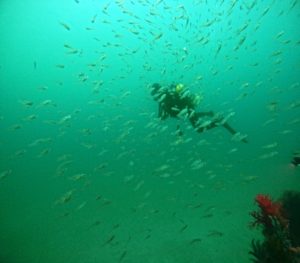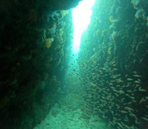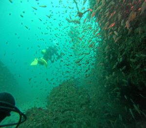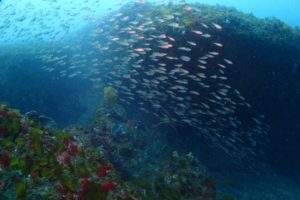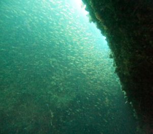 他にも地形を潜り抜けてのキンメモドキの大群!
