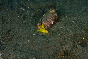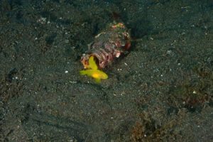 瓶の中から顔を出す黄色いハゼのペア(^^)