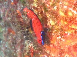 岩場のかげではヒメギンポが婚姻色で猛アピールからの産卵♪