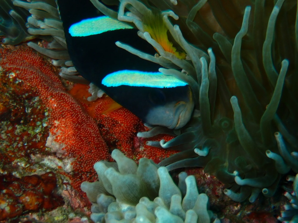 クマノミの産卵も4回目オレンジ色が綺麗な産みたて卵でした\(^-^)/
