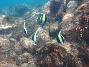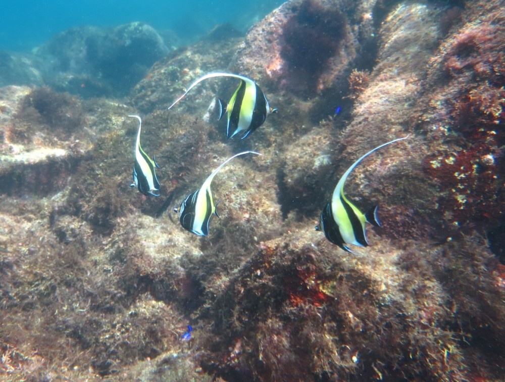 水面にはナンヨウツバメウオ幼魚も登場してます♪