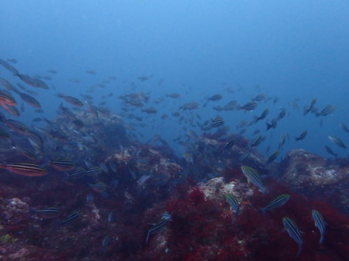 他にもシラコダイ超大群!メジナ、スズメダイ、コガネスズメダイ、カゴカキダイ、アジ、ムツ等々群れ最高のボートダイビングでした\(^o^)/