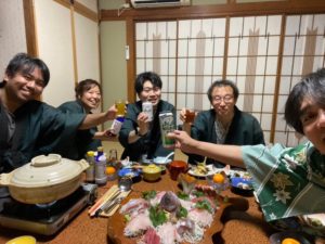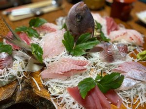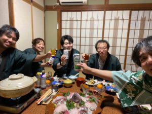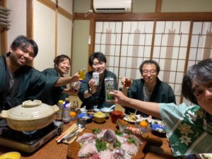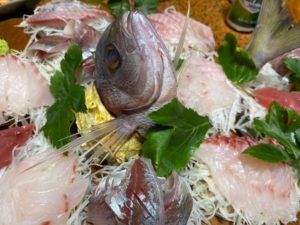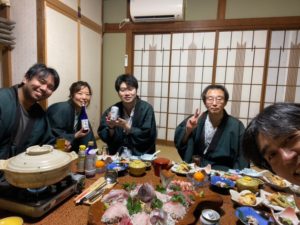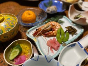 そのほかにも沢山のお刺身、天ぷら、エビ等々食べきれない程の夕食を堪能し、