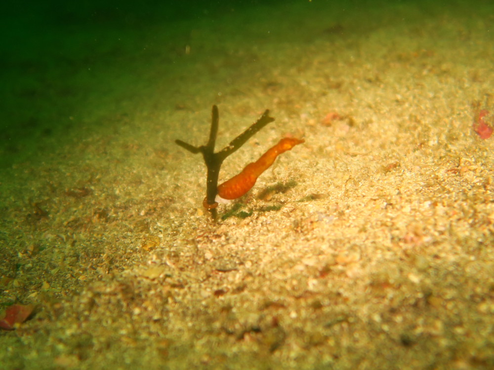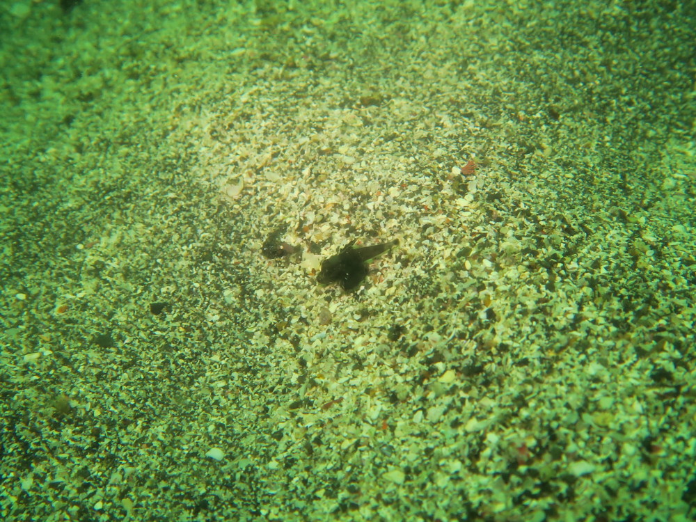 砂地にはタツの仲間タツノイトコがちっちゃなミルにくっついてます。