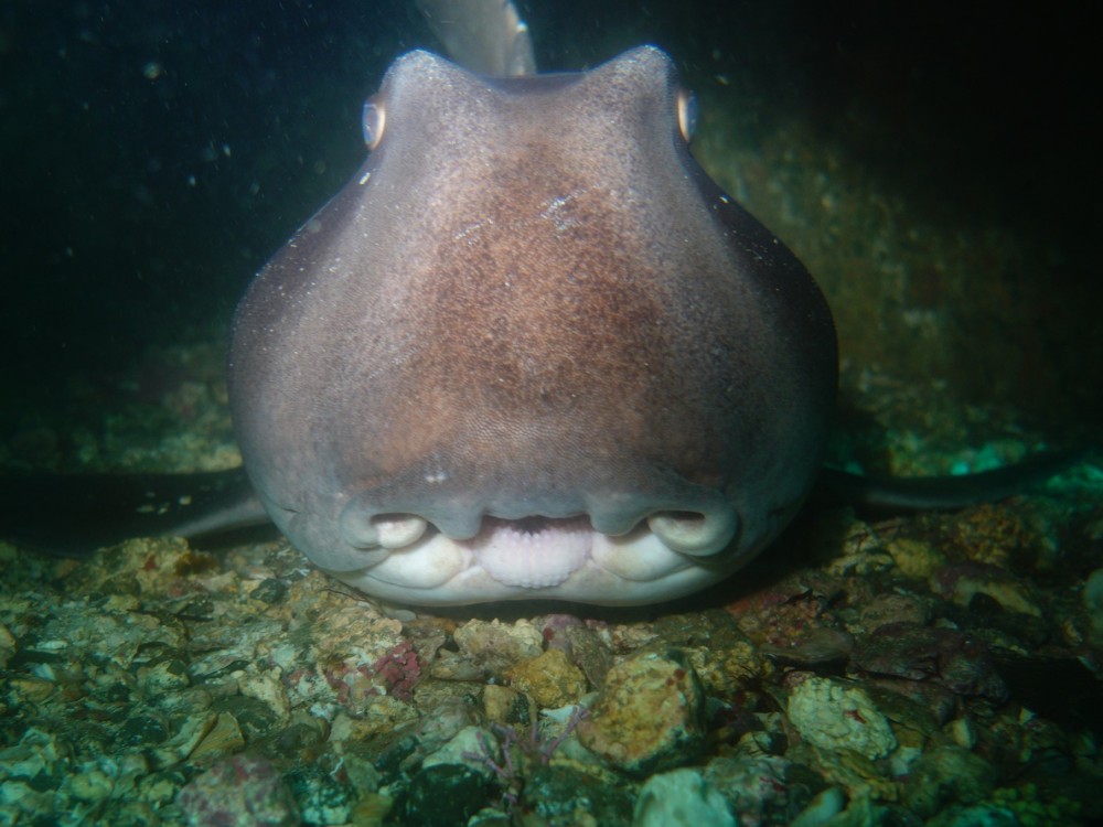 そんなテトラの下には大きな顔したネコザメがお昼寝していました~