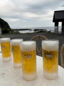 海辺でキンキンに冷えたビールにお肉盛り沢山のBBQをがっつりと♪