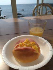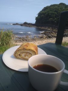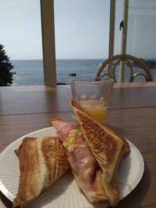 翌日は優雅に海辺のテラスでお客様お手製のホットサンドの朝食からスタ~ト♪