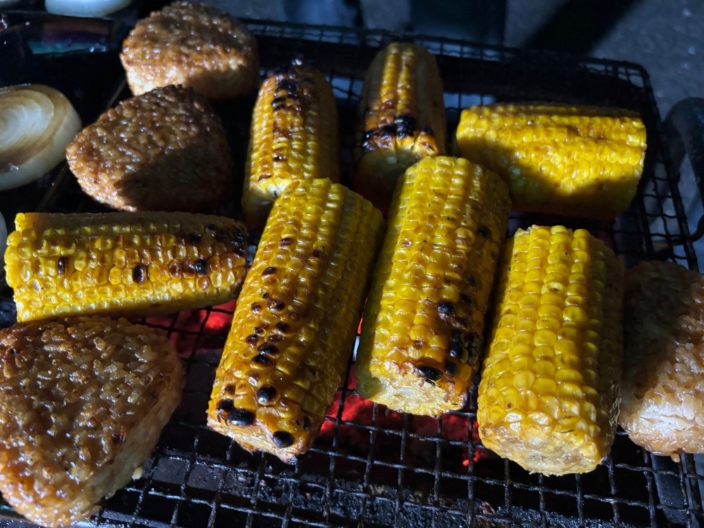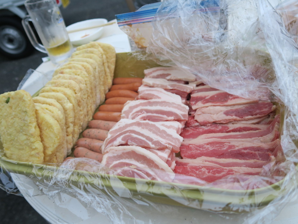 ランチにはサザエご飯に焼きそば&肉・肉・肉~!