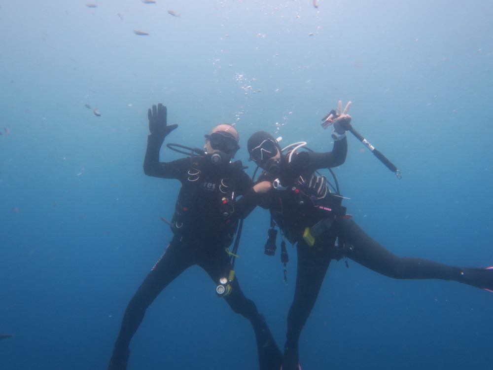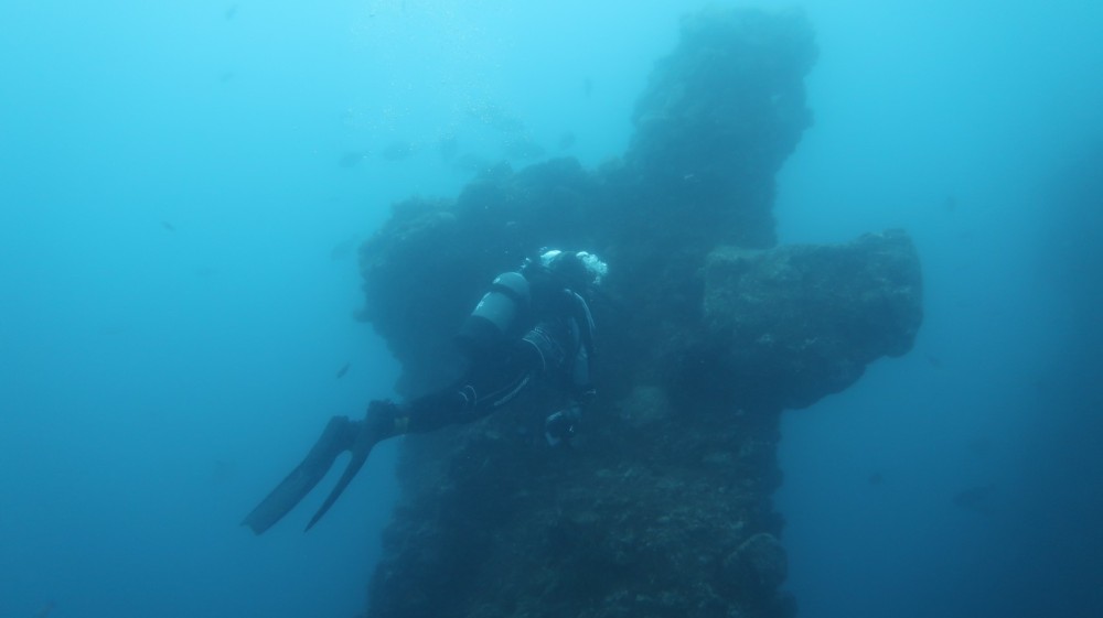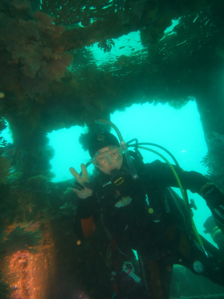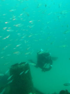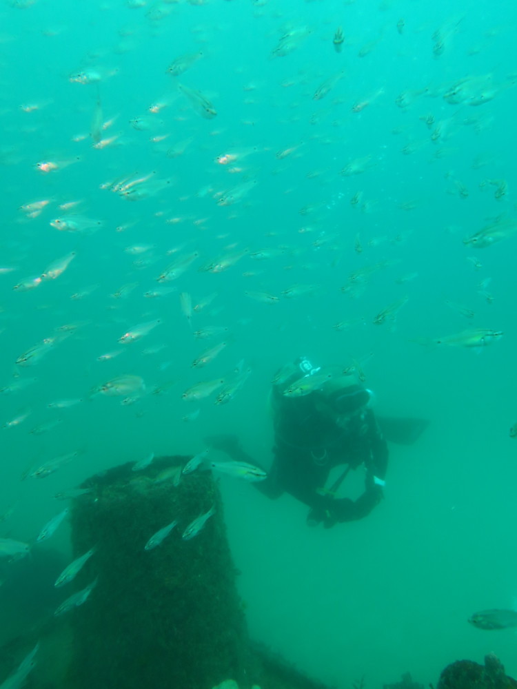 透明度は少し残念でしたが沈船のネンブツダイの群れと戯れ♪