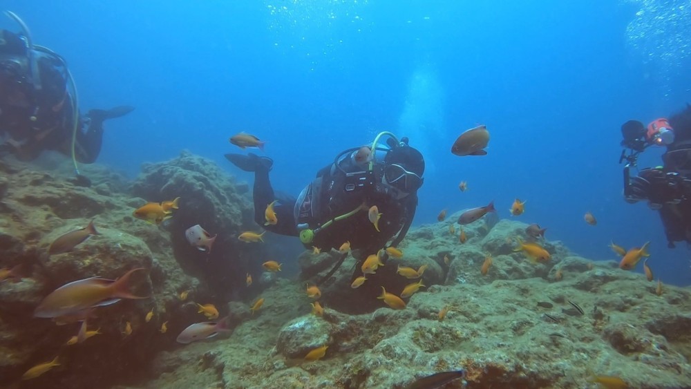 タカサゴやイサキ、メジナ、キンギョハナダイの群れをがっつり潜り!