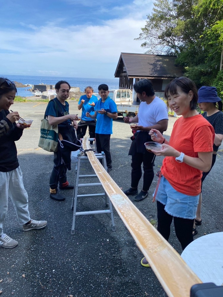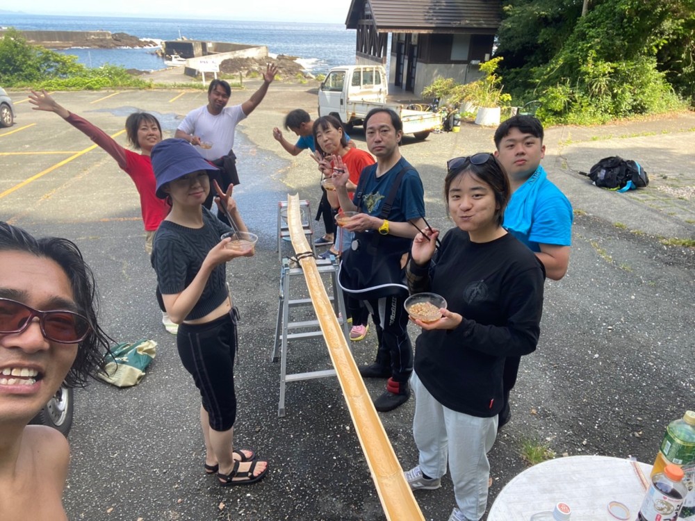 今回は初日の昼食に流しそうめんも楽しんで召し上がって頂きました\(^-^)/