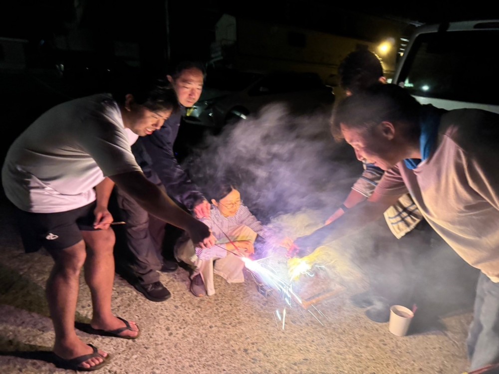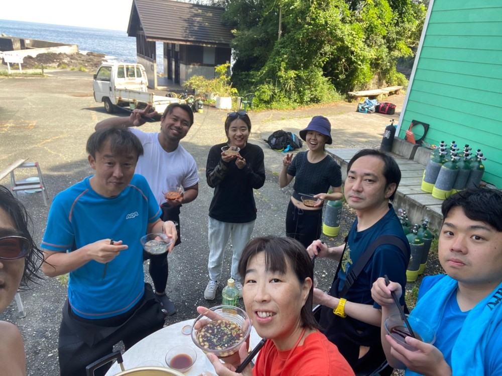 夕食後には何十匹も乱舞するホタルを見て、海岸で花火をして、民宿でダイビング談義で盛り上がった盛り沢山のツアーでした♪