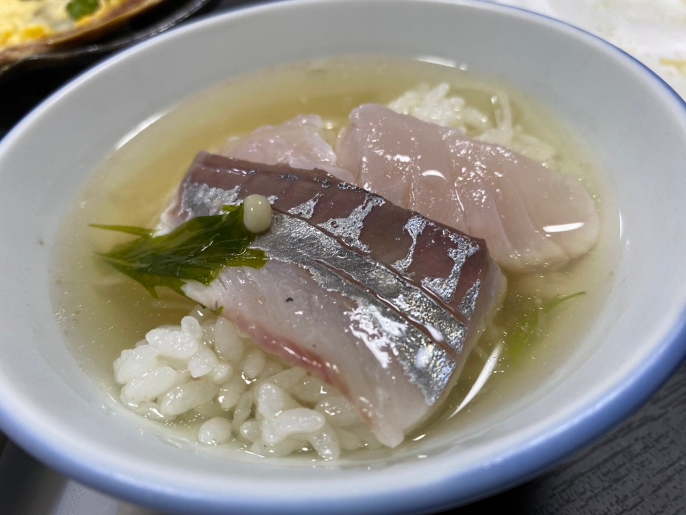 キンメと昆布でとった出汁をお刺身をのせた白いご飯にかけて、まご茶風特製お茶漬けでしめました\(^-^)/