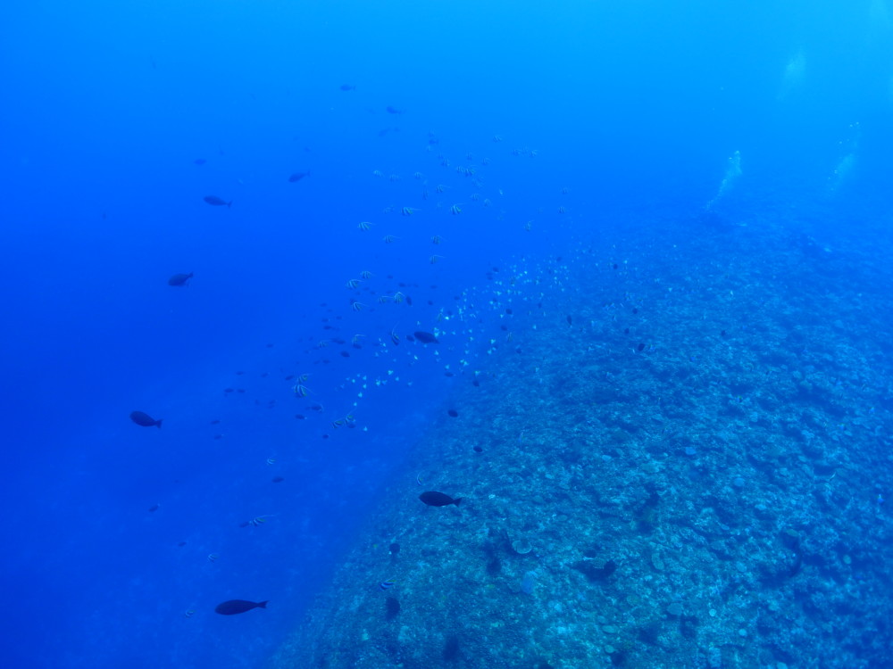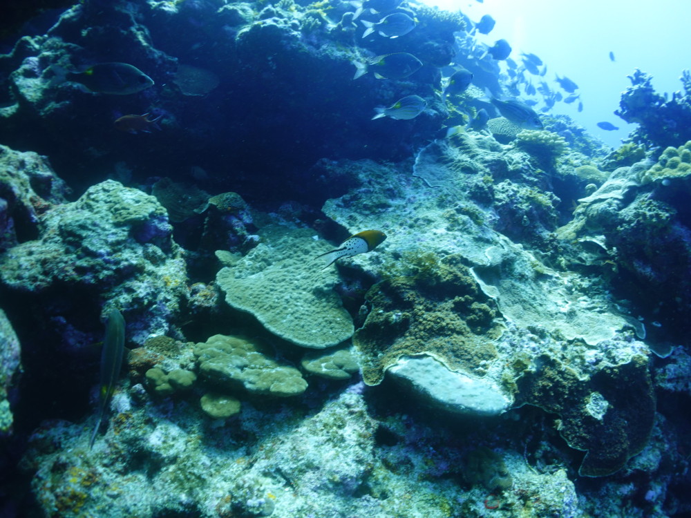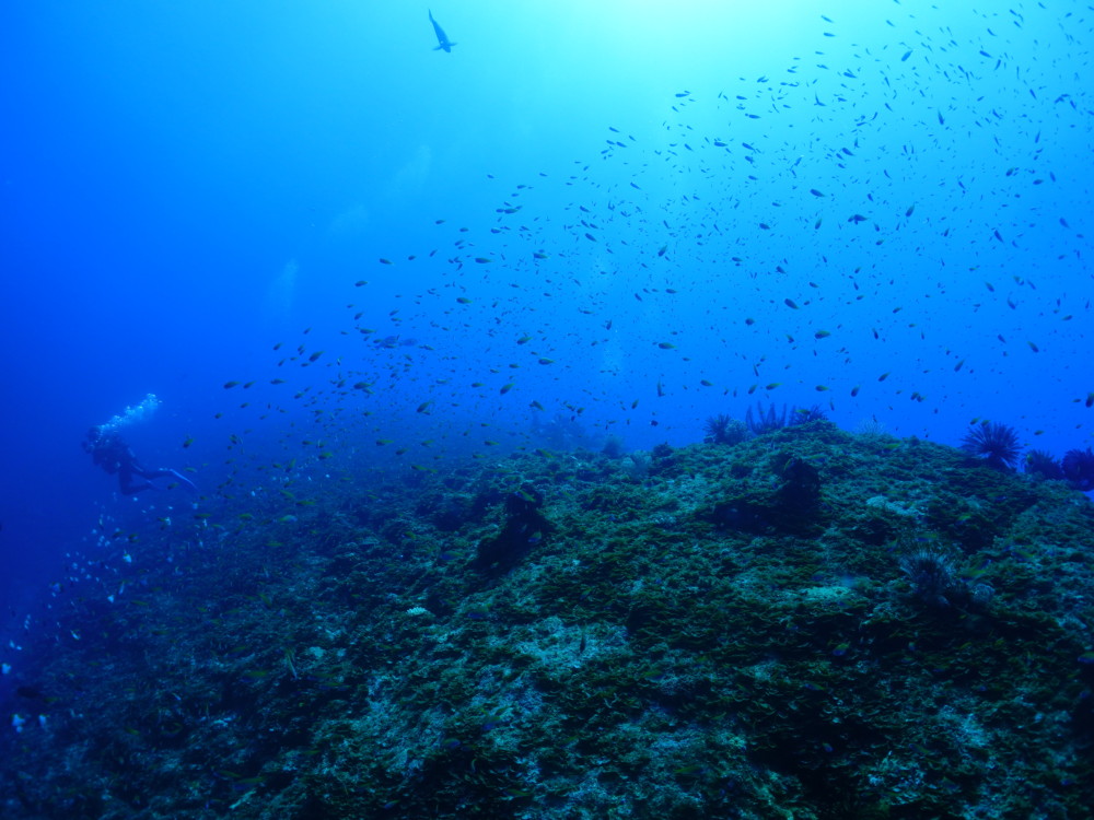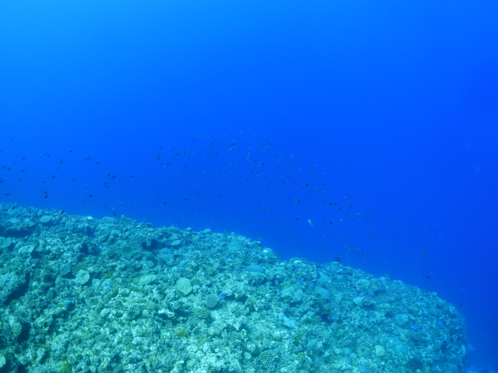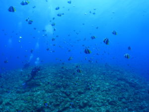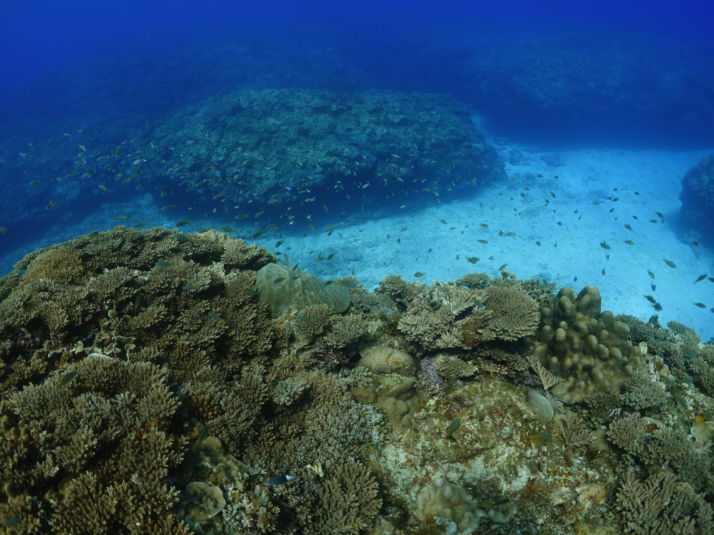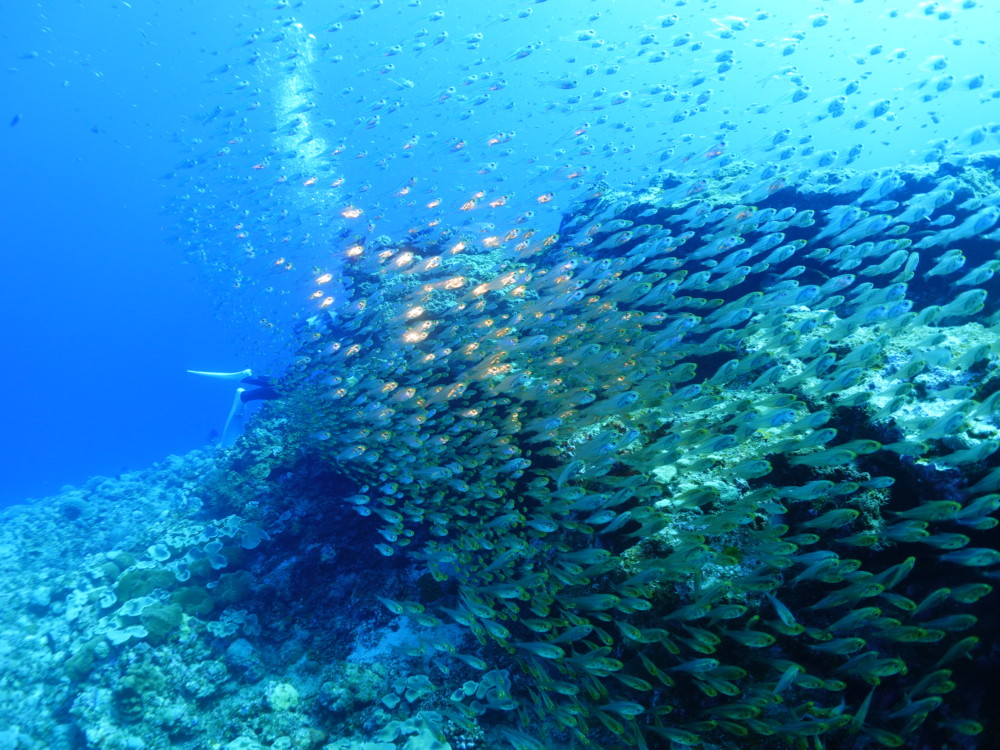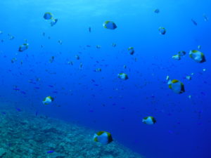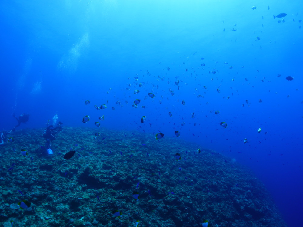 流れの当たるポイントではカスミチョウチョウウオやムレハタタテダイが群々