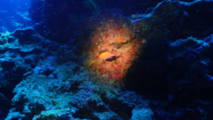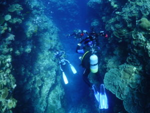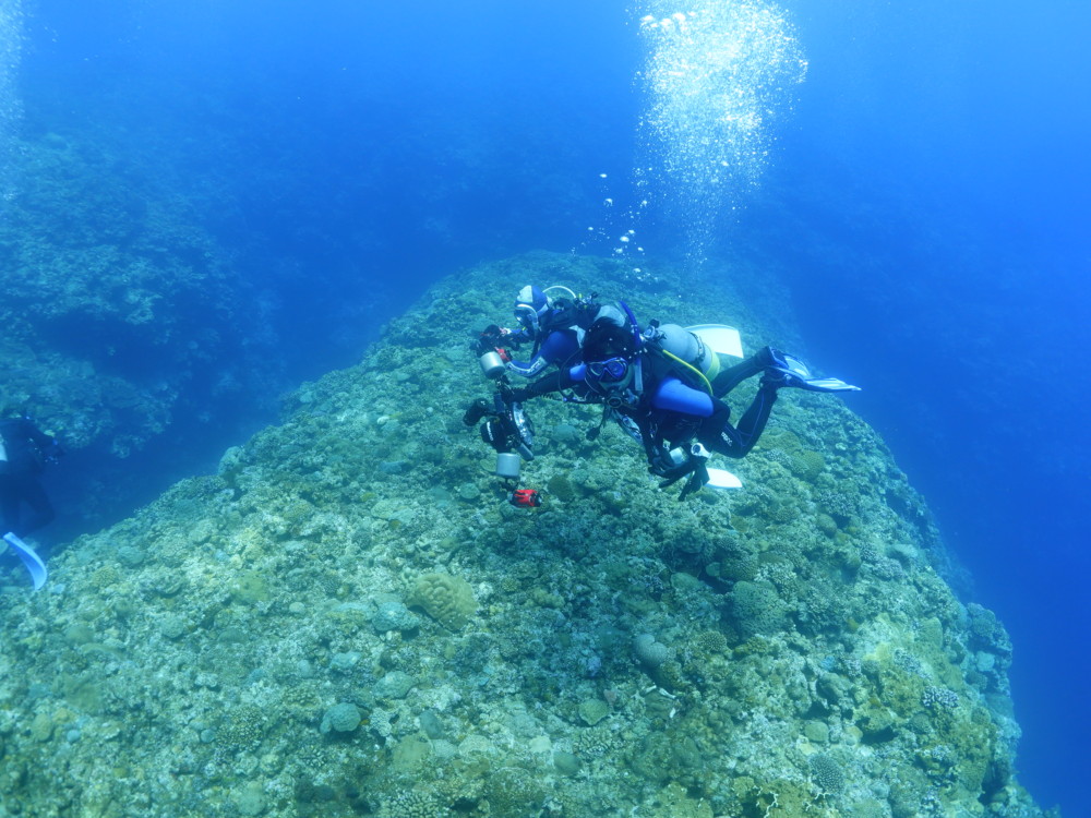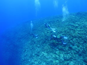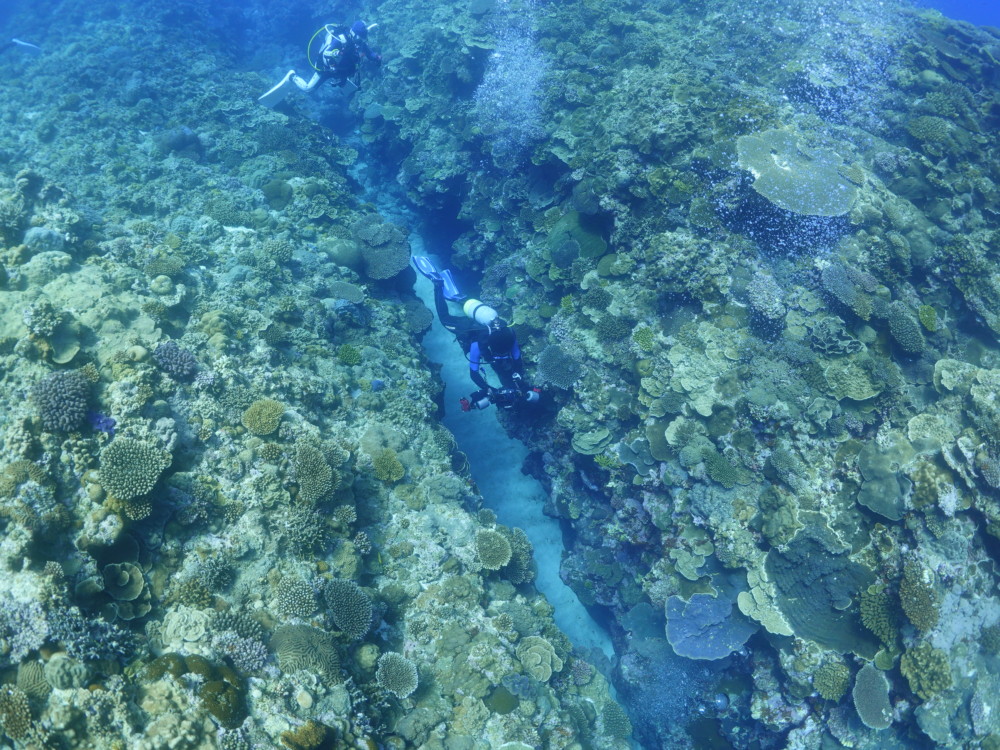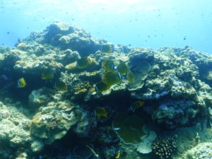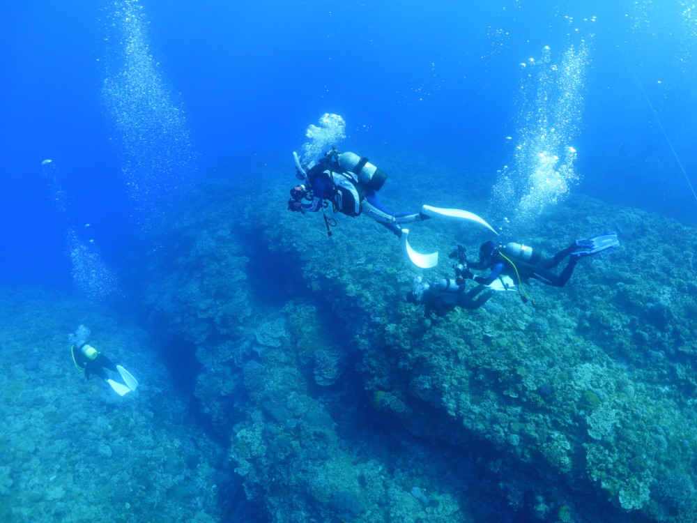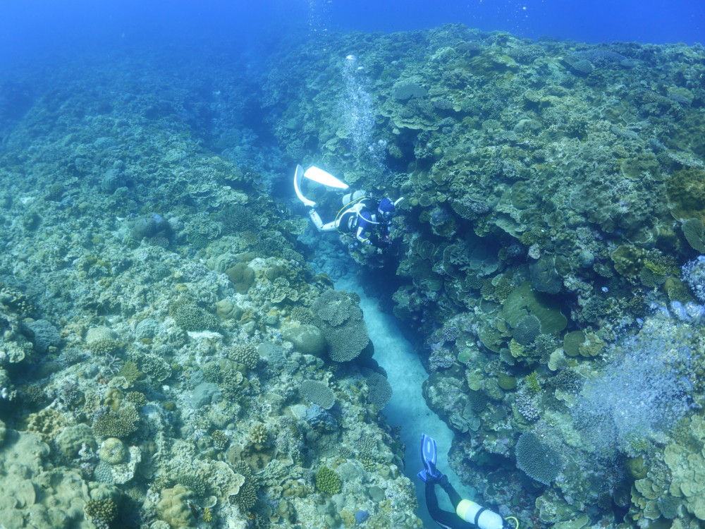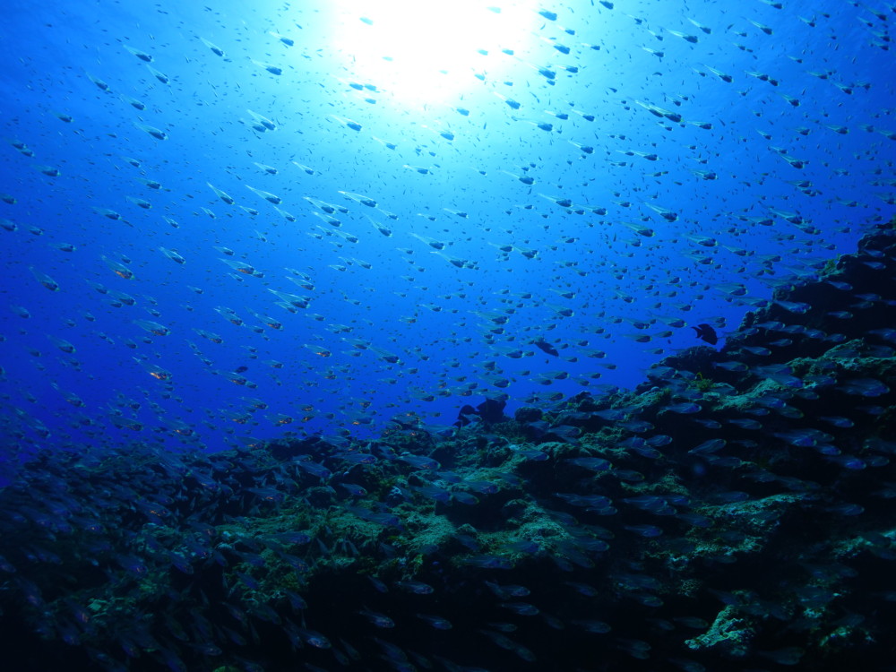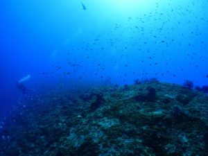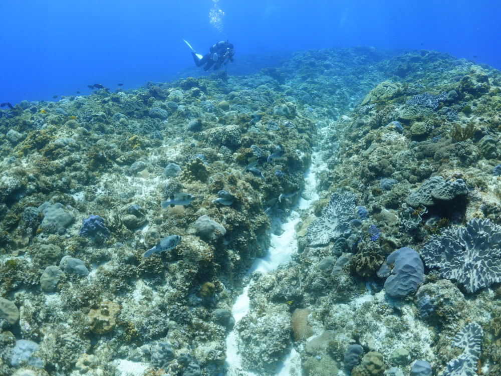 流れの当たるポイントではカスミチョウチョウウオやムレハタタテダイが群々