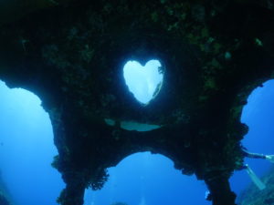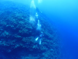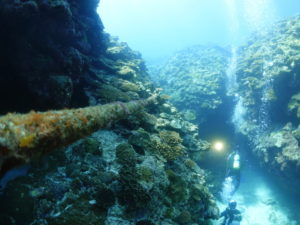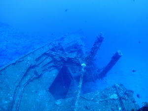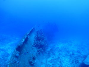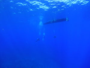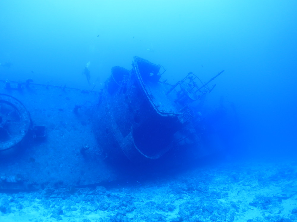 お目当ての沈船あまみ~51mの船体は大きくて大迫力!