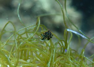 水底に目を向けホソジュズモをよく見るとアリモウミウシが隠れていますよ