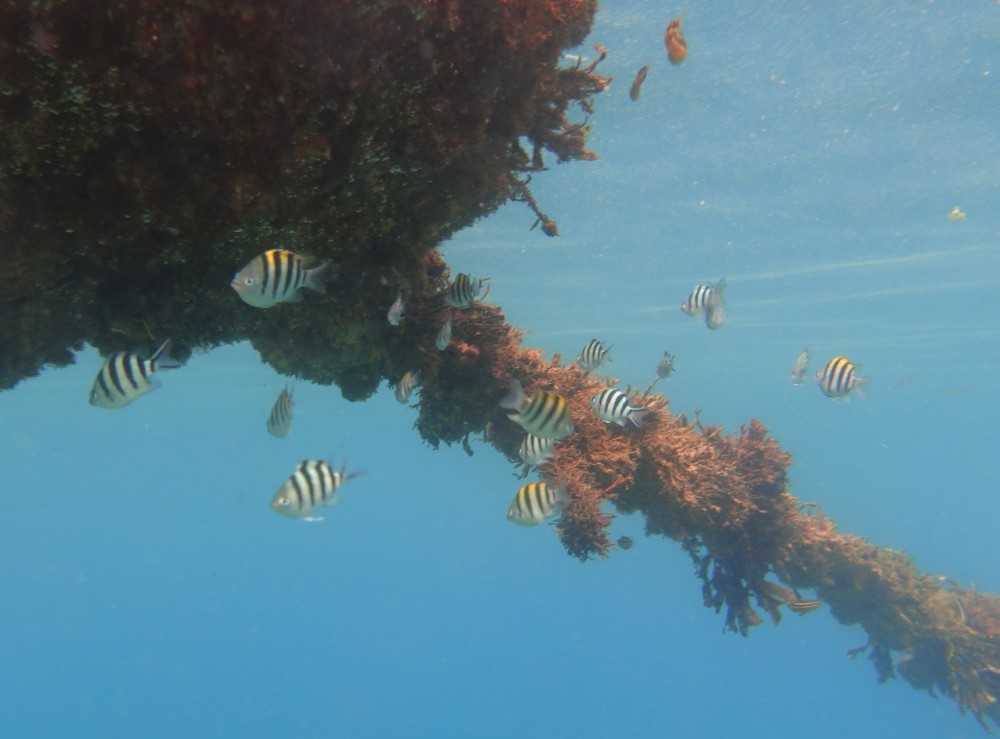 テトラポットの隙間で光とクロホシイシモチやネンブツダイがいい感じです(^^)