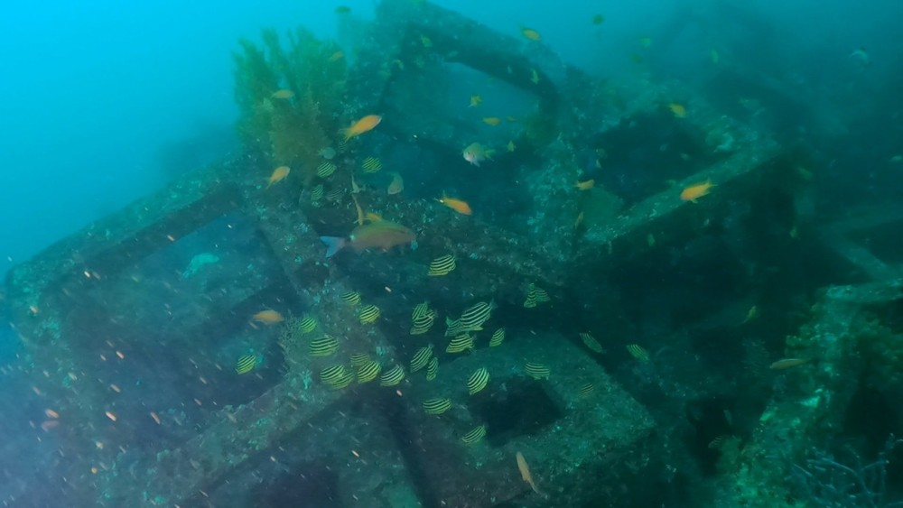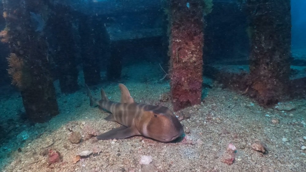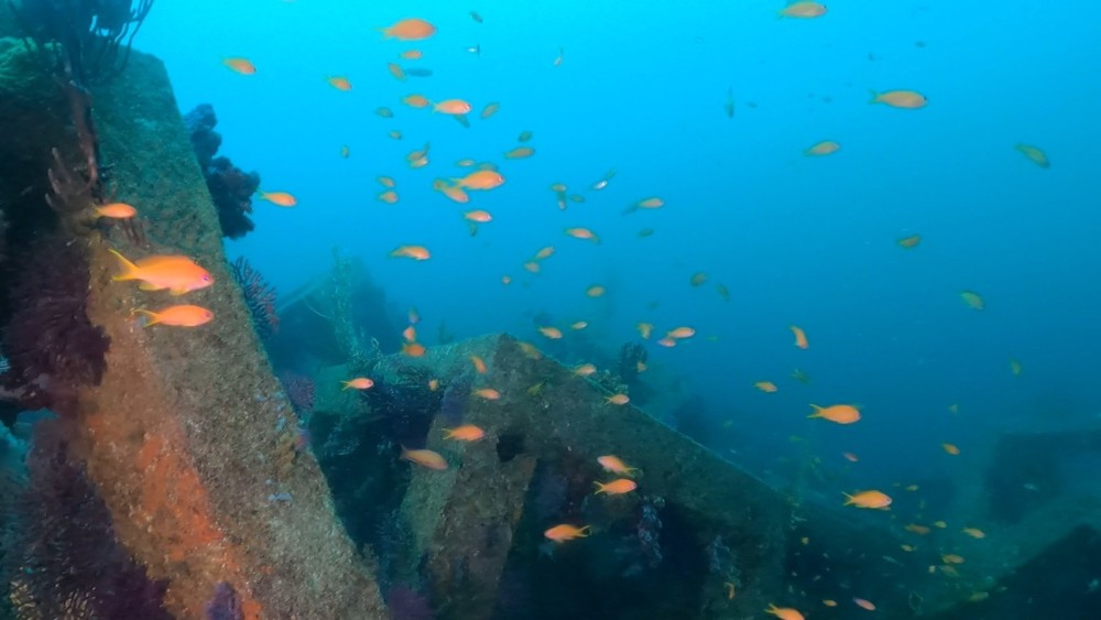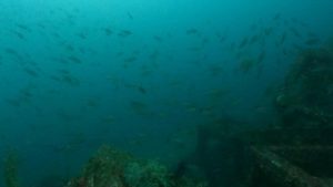 5日は富戸のボートはピラミッドのキンギョハナダイ、イサキ、カゴカキダイの群れ、大きなネコザメと出会い、
