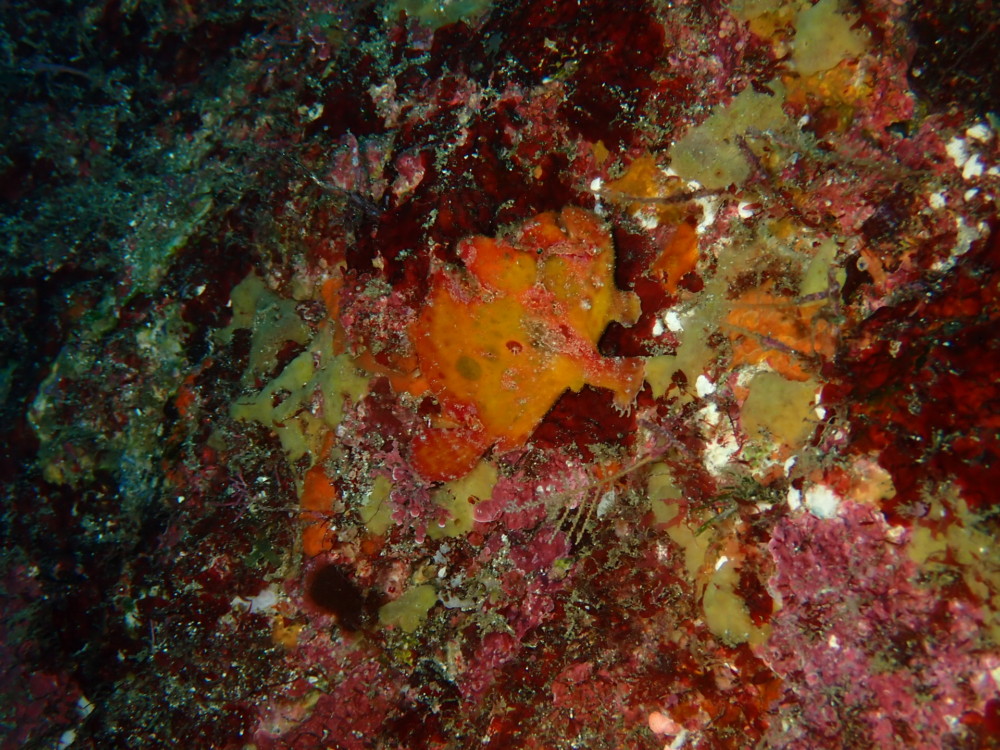 岩に上手に擬態しているベニカエルアンコウ