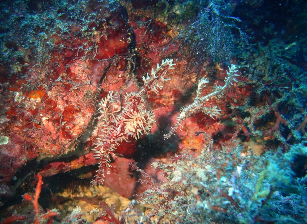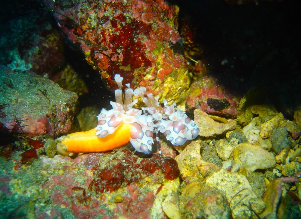 フリソデエビはヒトデを抱えて移動中でした(^^;)