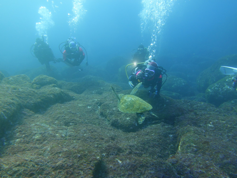 王の浜ではイサキの群れに、カメはとってものんびりしていて近づいても我関せずでとってもかわいかったですよ♪